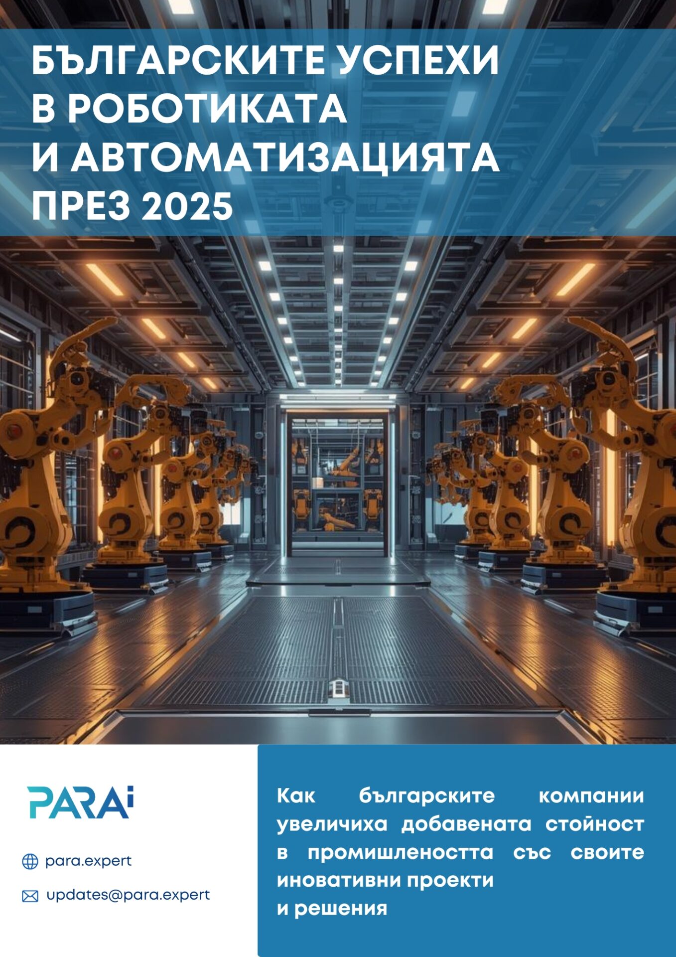 Най-важното – този доклад е направен с идеята да покаже български постижения в сферата на роботиката, автоматизацията и иновациите. Целта ни е не само да информираме, но и да дадем заслужено признание на родните проекти, продукти и екипи, които движат технологиите напред. За въпроси, свързани с този доклад, моля, свържете се с нас на: updates@para.expert